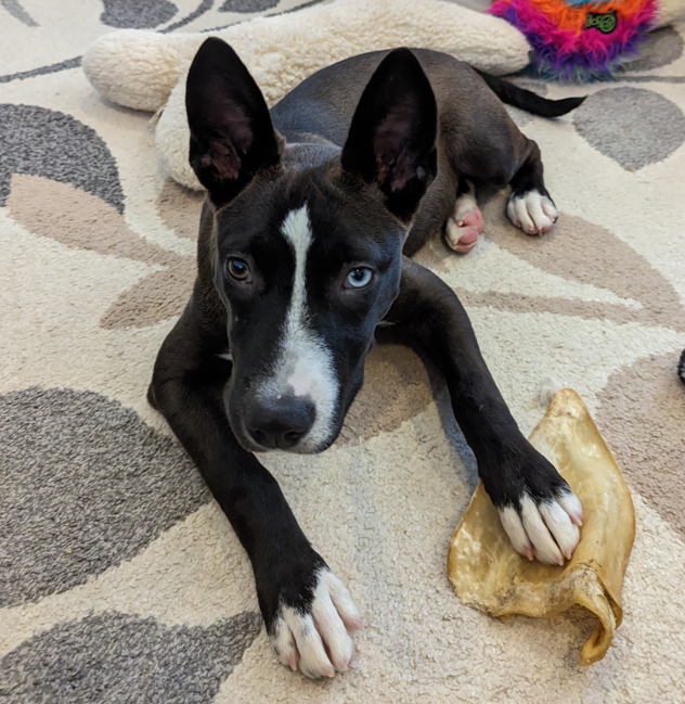 Nanna the Huskey mix is the most boisterous member of the family. We adopted her in December 2022. This energetic not-quite-a-puppy is curious of the world and loves to play. She loves chasing anything that moves: squirrels, balls, Freyja. If she had her way, she would spend the whole day outside.
