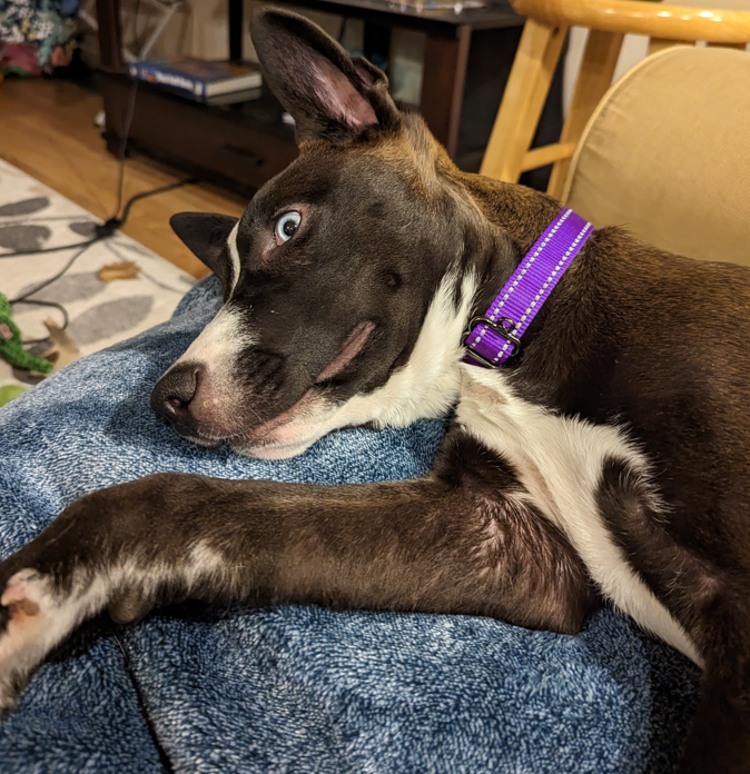 Freyja is our Pug/Brittney mix. We adopted her in 2018 and since then she has made herself an important part of our family. She loves going to the park, being chased, and eating. She was Catt’s first experience with training and knows over twenty tricks, including, shake, play dead, spin, roll over, and stand. She still has a lot of anxiety from her previous life, but has been making steady progress in learning to overcome it.